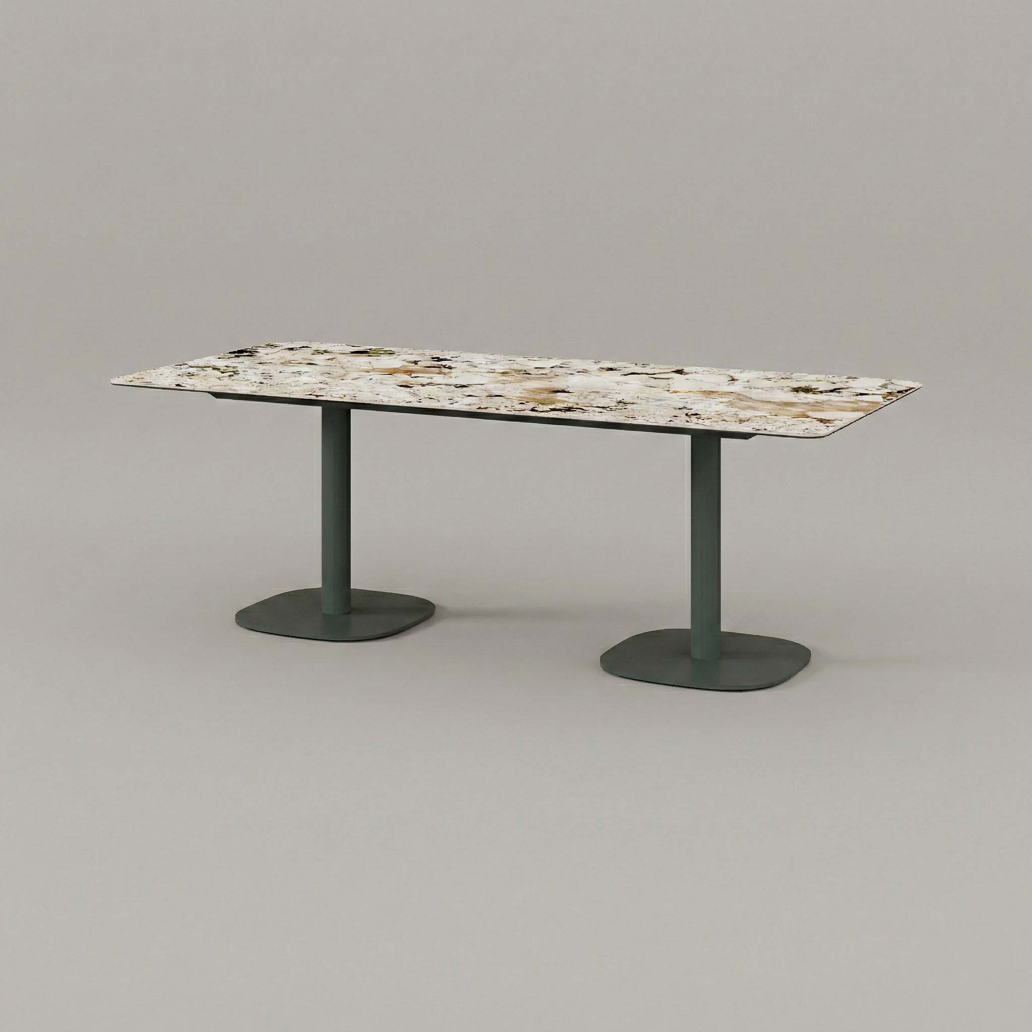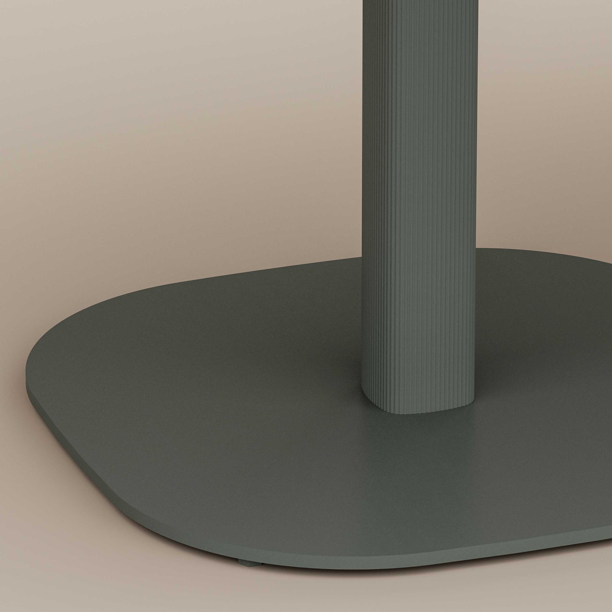 Der Tisch Horta ist nach dem belgischen Architekten und Pionier des Art Nouveau benannt und überträgt dessen Meisterschaft in organischen Linien auf ein Möbelstück mit starker skulpturaler Identität: eine zentrale Säule aus gerilltem Aluminium, die ihm technischen und visuellen Charakter verleiht, ein Stahlfuß, der Stabilität garantiert, und eine Platte aus technischer Keramik, die sowohl im Innen- als auch im Außenbereich für Langlebigkeit sorgt. Mit seinem nicht kreisförmigen Sockel und seiner architektonischen Präsenz ist Horta dafür konzipiert, zum Mittelpunkt jedes Raumes zu werden und modernistisches Erbe mit aktueller Funktionalität zu verbinden.